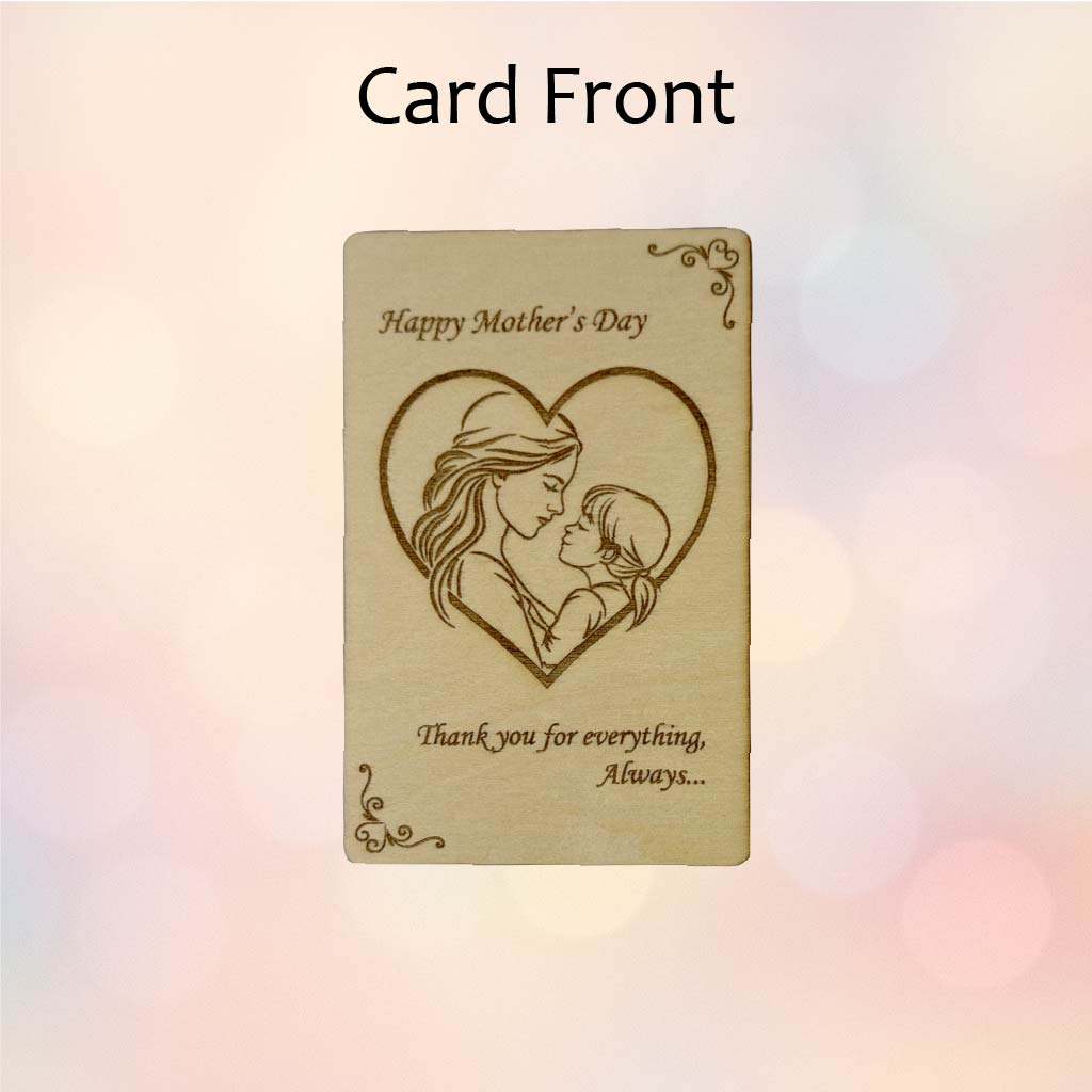Make it personal by adding your own wording to the back of the card. Tell us what you’d like engraved: your message, names, dates, or a short sentiment and we’ll carve it directly onto the back of your card. This is perfect for: